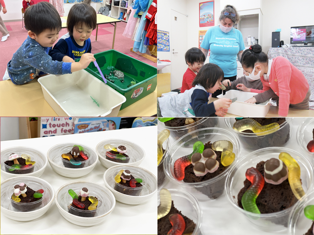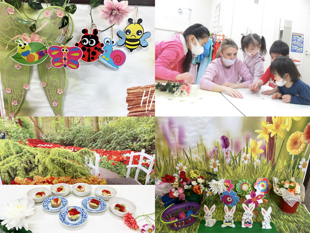 カラフルなお花や昆虫のアートをつくったり、スナックタイムでは美味しいデザートを食べたり、春にちなんだ遊びを朝から午後まで英語漬けのスケジュールでネイティブティーチャーと一緒に様々なアクティビティを楽しみました。クラスの中ではお互いを思いやることを学び、素敵なお友達を作ることもできました!