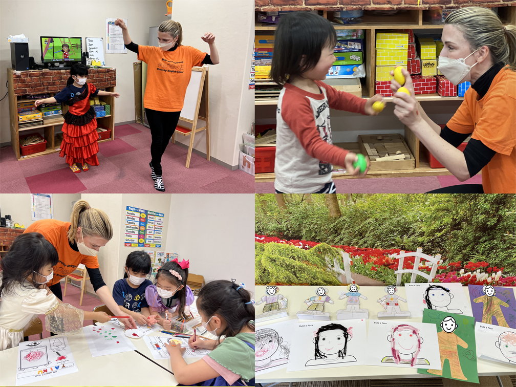 4月からの新学期に向けて、「All About Me(自分について)」学びました。五感や感情、体の部位の名前や自分自身についてのあらゆる事実に焦点を当てます。みんなそれぞれ個性があって特別な存在です。私たちは、常に”I’m special!”と自信をもって言えるような子どもたちを育てていきたいと考えています。子どもたちがそれぞれの五感を発見できたり、特別な存在に成長していけるようなさまざまなアクティビティを取り入れたプログラムとなりました。
