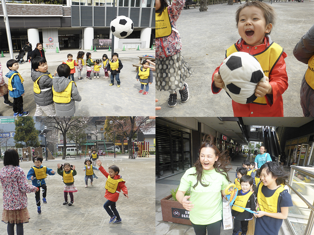 4) 春の日替わりテーマにそって、ごっこ遊びやテーマ学習、Music & Movement, Arts and Crafts、デザートタイム等。
