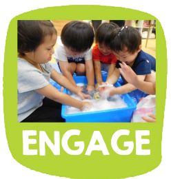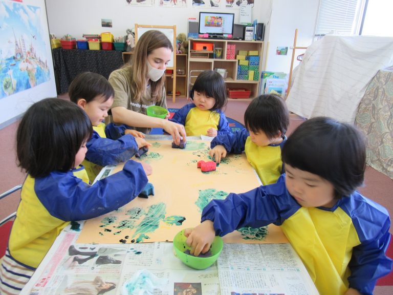 Sensory Play センサリー・プレイ(感覚遊び)や TPR(Total Physical Response)など体全体を使って英語を英語のまま記憶していく体験型の遊びを多く取り入れています。